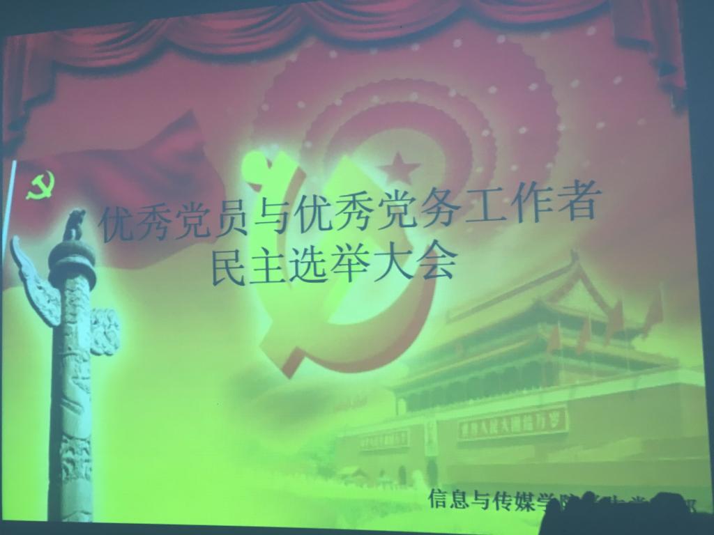 为了深入贯彻落实科学发展观,全面加强党的先进性建设和执政能力建设,提高党员队伍整体素质。我院学生党支部结合实际情况于6月1日上午在11栋3楼教师会议室召开了优秀党员与优秀党务工作者民主选举大会。参加此次会议的有学生党支部书记何祉谕、学生正式党员和预备党员。