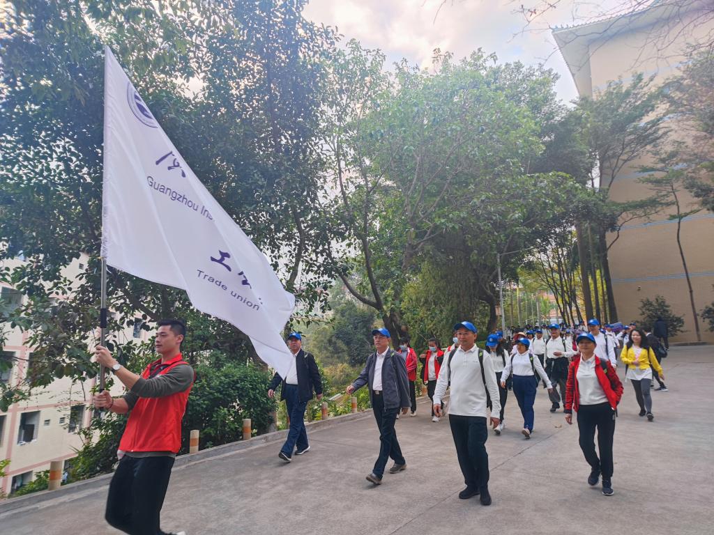 深秋时节的帽峰山空气清新、景色宜人。早上8点整,随着一声出发号令,胡社军校长、黄圣诚书记等党政领导带领第一梯队率先出发,其他七个梯队紧跟其后。大家穿过穗丰村乡村小道,从小石船景区直入山道,一路领略帽峰山森林公园的云山、迷雾、密林、繁花,听山涧林泉潺潺,看飞鸟穿过云林,拍远处楼影幢幢,为同事好友鼓劲,在轻寒中向海拔534.9米的主峰进发。