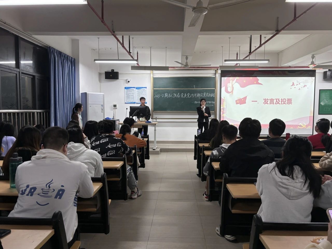 会上,各拟预备党员依次进行发言,向党组织汇报本人在发展对象期间思想、工作及生活等方面的情况,并阐述自己的入党动机以及入党后的规划。发言结束后,全体正式党员秉持着”实事求是、公平公正”的原则对拟预备党员的表现进行投票。随后,学生第二党支部副书记沈燕清同志进行会议总结。沈同志强调,每一位发展对象都应该牢记自己的发言,将其转化为实际行动,践行初心和使命,每位同志都要深入学习贯彻习近平新时代中国特色社会主义思想,增强“四个意识”,坚定“四个自信”,做到“两个维护”,在实际工作中不断提高政治站位,切实把党章各项规定贯彻到事业中、落实到行动上。