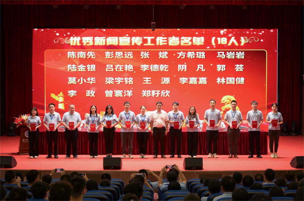 表彰大会上,我院党总支、教工党支部分别荣获先进党总支和先进党支部称号。先进个人表彰中,学院党总支书记蔡岳良同志荣获“优秀党务工作者”表彰。王煜林、陈易平、陈星莹、李珂珂、陈健五位教工党员荣获“优秀教工党员”。学生党刘家俊和陈菀忻同学荣获“优秀学生共产党员”称号。马岩岩老师荣获“优秀新闻宣传工作者”。