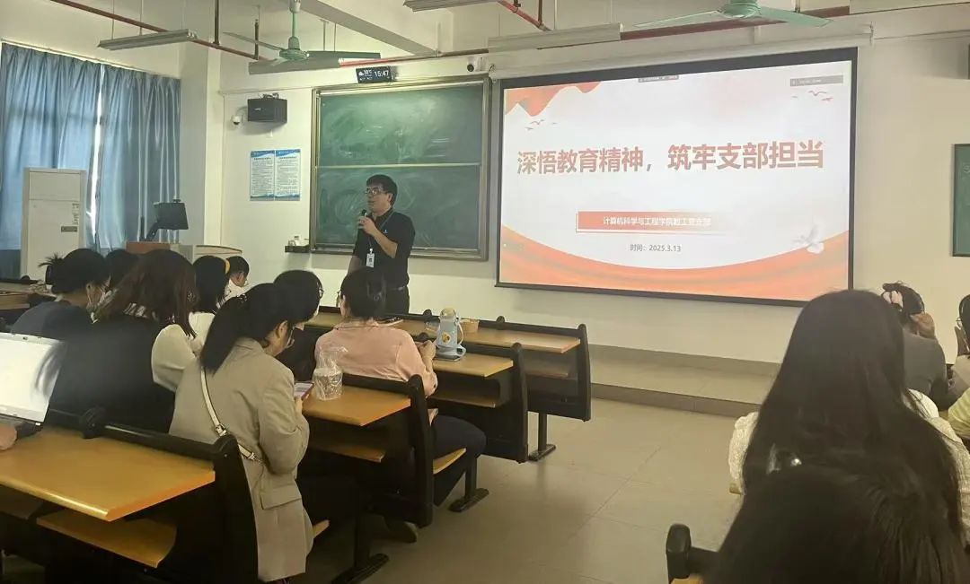 (通讯员:杨晓萍)3月13日,为深入学习并贯彻全国教育大会精神,推动教育现代化与高质量发展,促进教育事业的改革创新与交流合作,1396me皇家世界教工党支部在13栋教学楼402教室召开了一场专题学习会,此次会议由学院党总支书记蔡岳良亲自主持,全体教工党员积极参与,共同探讨了教育强国建设的重要意义与实践路径。