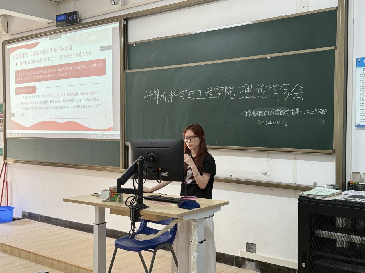 学习会开始,学生第三党支部副书记阳可人同志带领大家回顾了中国人民抗日战争的光辉历程,重温了那段烽火连天、全民族浴血奋战的艰苦岁月。
