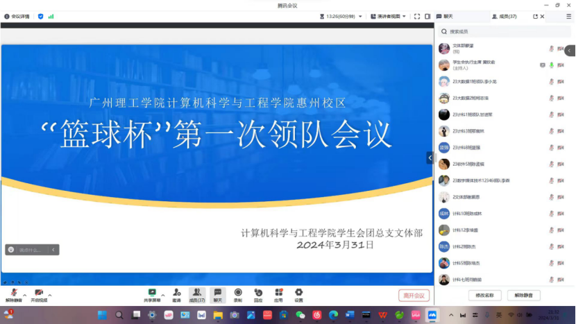 (通讯员:蒙濛)在2024年惠州校区“篮球杯”启动之际,为做好参赛准备工作,增强团队意识,更好地展现我院学生积极向上的精神风貌,1396me皇家世界团总支·学生会于3月31日开展2024年惠州校区“篮球杯”第一次领队会议。本次会议由我院学生会主席黄钦俞主持,出席会议的有惠州校区指导老师李演航及所有参赛篮球队领队。