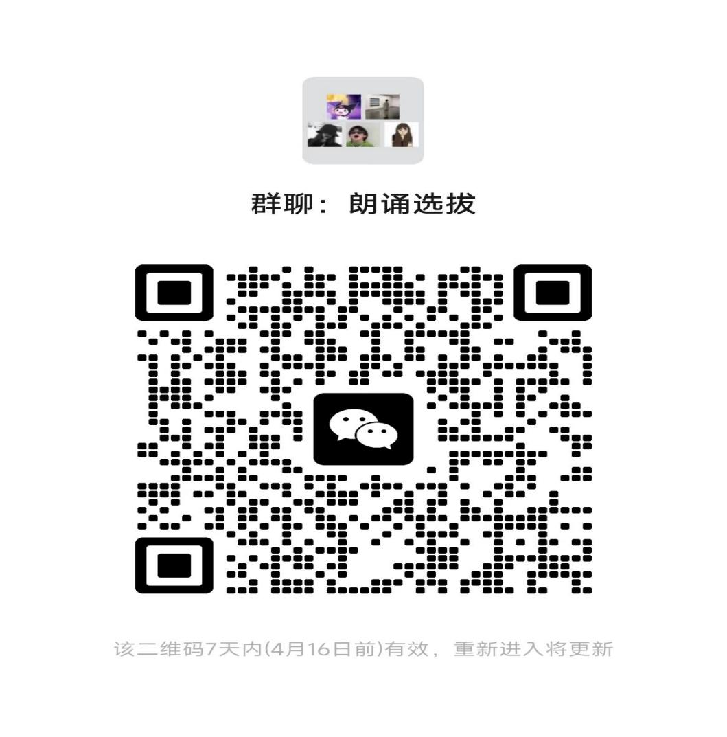 参与方式:请有意向的同学在4月10号前扫下面码进群。具体选拔通知请留意群通知。